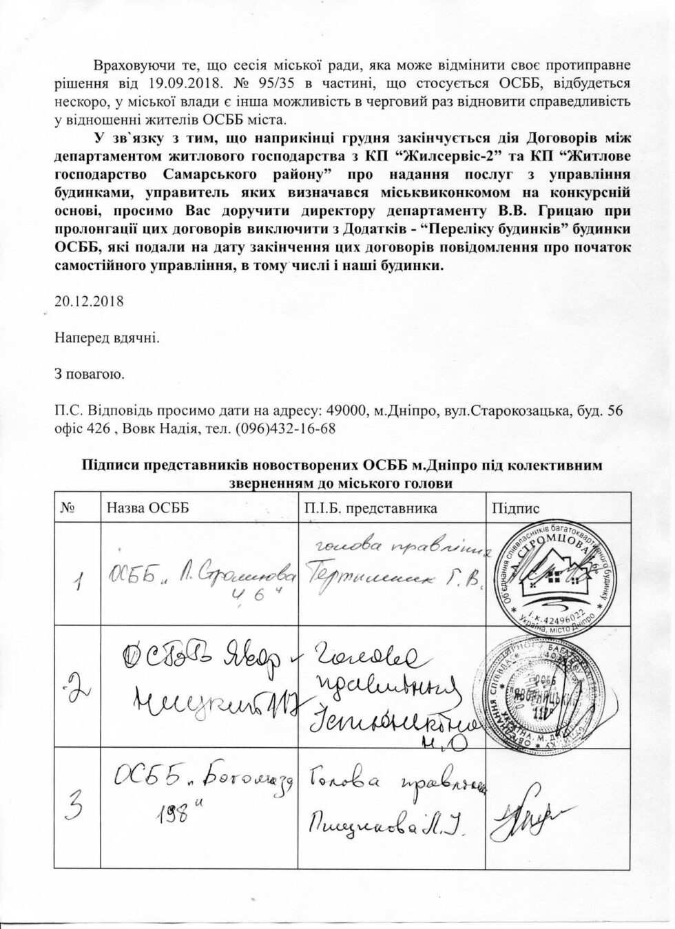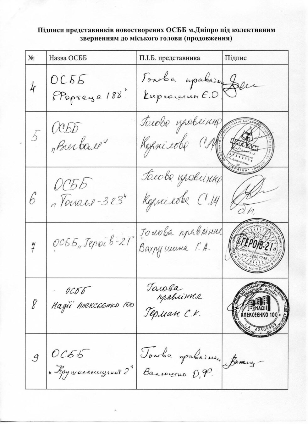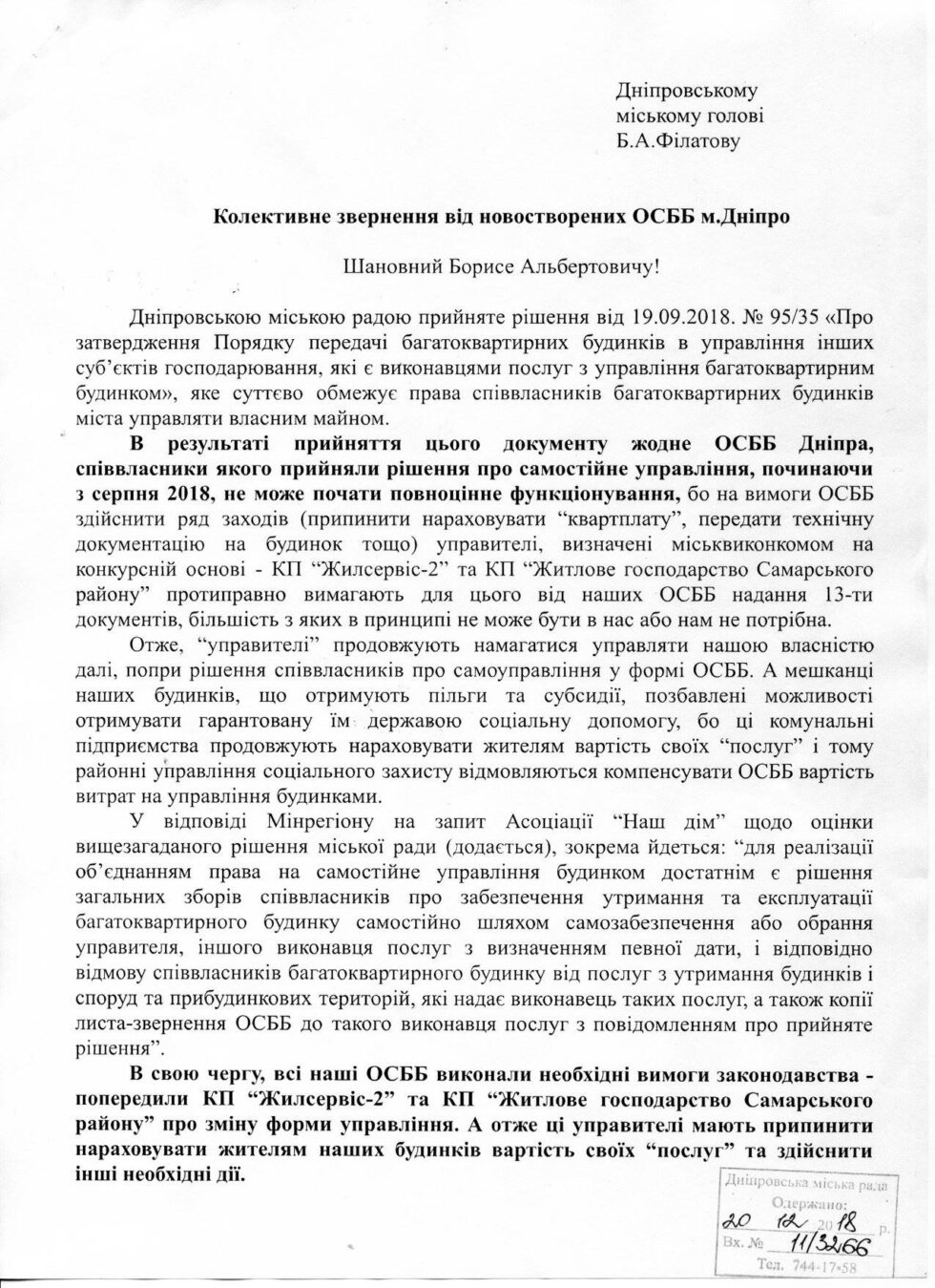 Звернення від жителiв новостворених ОСББ ЖБК “Наш дім” до мiського голови м. Дніпро