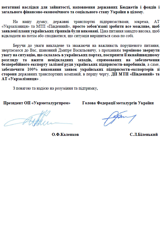 Звернення до Першого заступника Міністра інфраструктури України щодо підвищення ефективності використання інфраструктури державних транспортних компаній